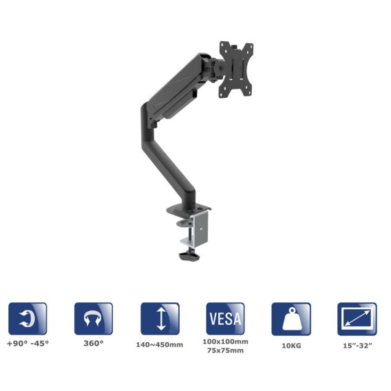 AKYGA Uchwyt biurkowy do monitora Akyga AK-MB-05 regulowane ramię gazowe 10kg VESA 75x75mm / 100x100mm 15-32"