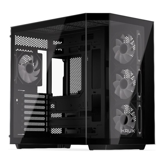 Informacje dodatkowe: Maksymalna długość zasilacza (PSU): 205 mm, System chłodzenia (4 wentylatory w komplecie,, maksimum 10 (120mm)):, - Front: 3x Krux 120 mm ARGB PWM, - Tył: 1x Krux 120 mm ARGB PWM, Kompatybilność z radiatorami chłodzenia cieczą:, - Front: 1x 240, 360 mm, - Tył: 1x 120 mm, - Góra: 1x 240, 280, 360 mm, - Dół: 1x 240, 280, 360 mm, Filtry przeciwkurzowe:, - Góra, - Dół, Zestaw zawiera:, - 4x Wentylator Krux 120 mm ARGB PWM, - Splitter PWM z kontrolerem ARGB, - Zestaw montażowy, - Instrukcja obsługi
