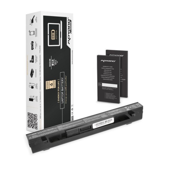 Nowa bateria firmy Movano z certyfikatem jakości CE, ROHS. Akumulator wyprodukowany w oparciu o ogniwa litowo-jonowe klasy A+ marki Samsung używane przez czołowych producentów oryginalnych baterii do laptopów. Bateria wyposażona jest w zabezpieczenie chroniące ją przed: przepięciem, przegrzaniem, zwarciem, przeciążeniem prądowym, głębokim rozładowaniem oraz przeładowaniem.